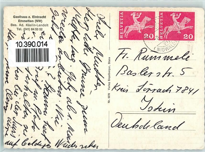 6376 Emmetten 1964 Gebrauchsspuren Gasthaus zur Eintracht