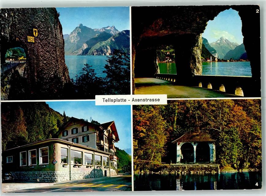 6377 Seelisberg - Axenstraße mit Uriotstock Axengalerie mit Flüelen Hotel Restaurant Tellsplatte Tellskapelle