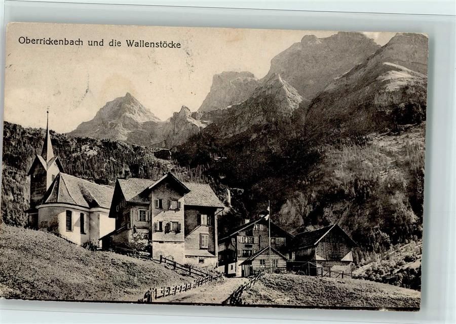6387 Oberrickenbach 1917 - Teilansicht mit Kirche, Verlag Engelberger Nr. 1501, gute Erhaltung AK