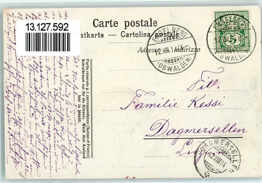 6390 Engelberg 1904 - Sommerwirtschaft Chalet-Alpenrose mit Rigidalstöcke auf Bord