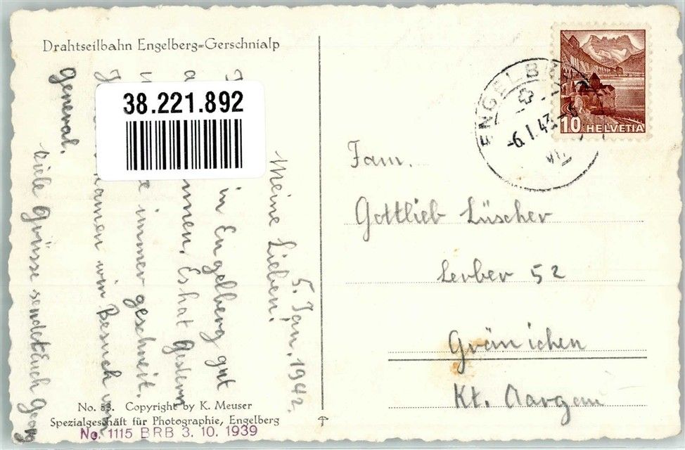 6390 Engelberg 1943 Winter Bergbahn Drahtseilbahn Gerschnialp
