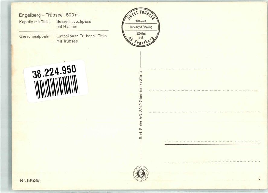 6390 Engelberg Foto AK Seilbahn KHotel Trübsee Kapelle mit Titlis Gerschnialpbahn