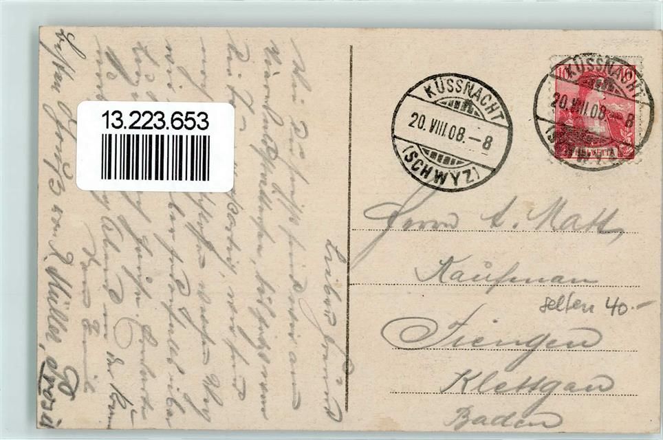 6403 Küssnacht am Rigi 1908 - Vierwaldstättersee Rigi Tellskapelle Hotel Pension du Lac