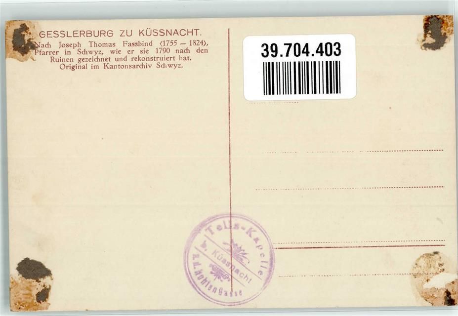 6403 Küssnacht am Rigi Gebrauchsspuren Gesslerburg sign. Fassbind Künstlerkarte