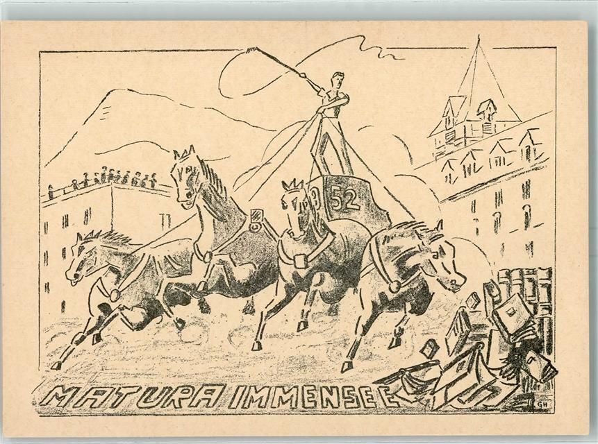 6405 Immensee 1952 Lithographie Matura Vierspänner Bücher sign