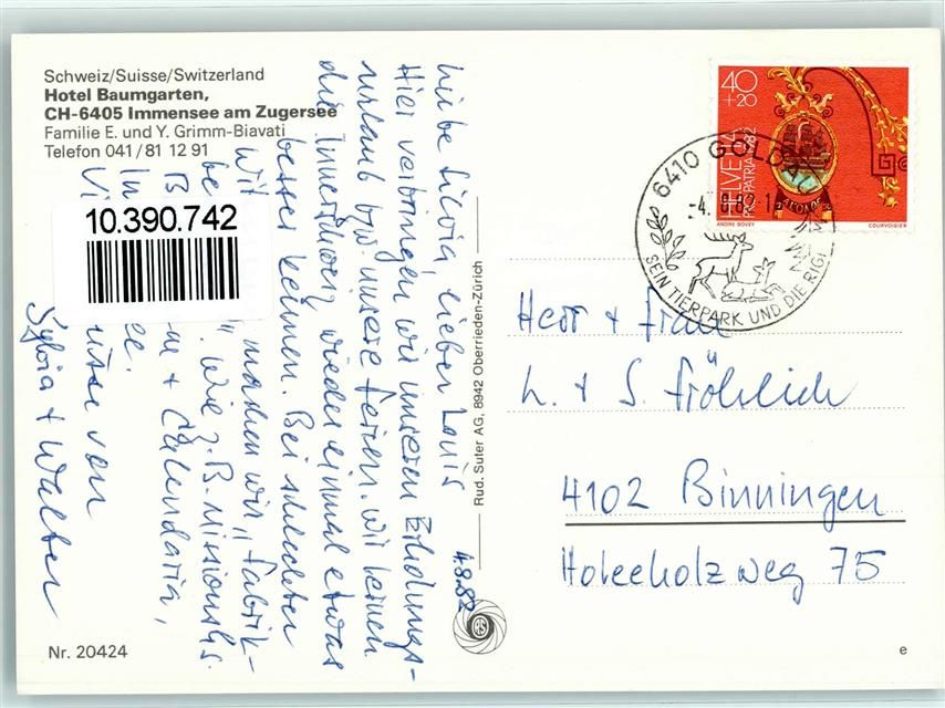 6405 Immensee 1982 - Hotel Baumgarten am Zugersee