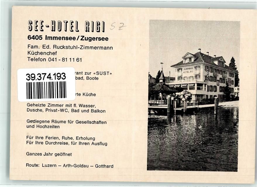 6405 Immensee KEINE AK Werbung Seehotel Rigi