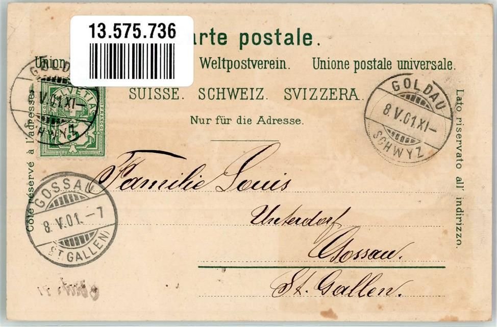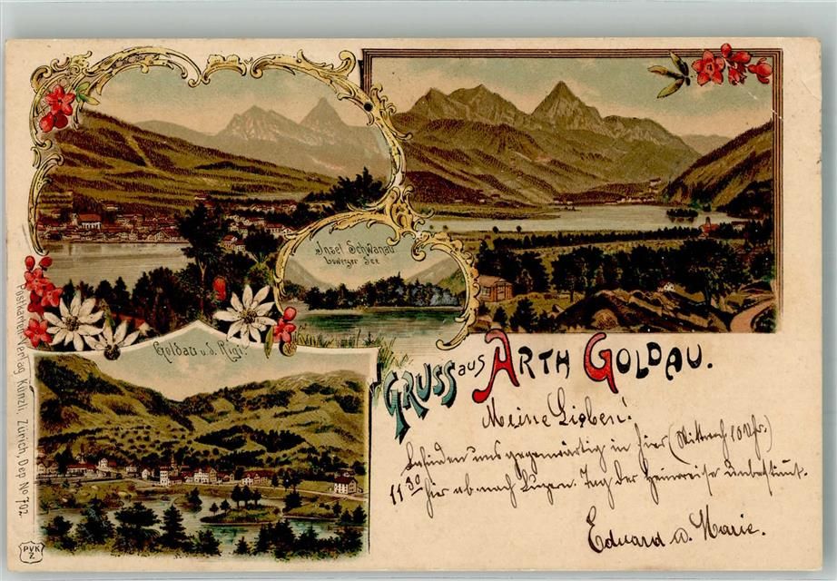 6410 Goldau 1901 Gebrauchsspuren Insel Schwangau Lithographie