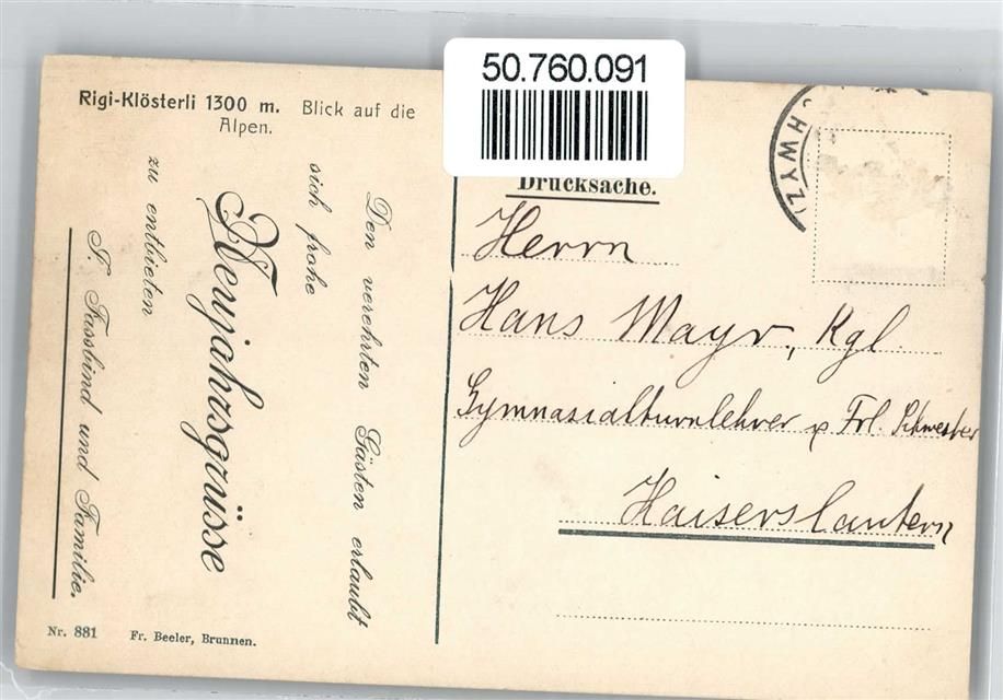 6410 Rigi Klösterli - Neujahr , Marke entfernt