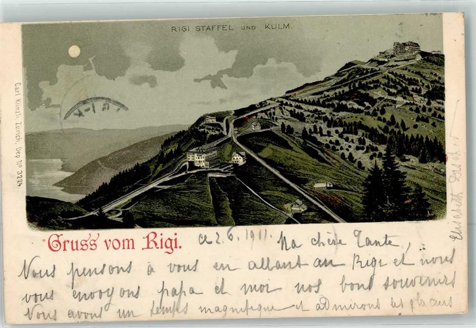 6410 Rigi Kulm 1901 Lithographie Mondschein
