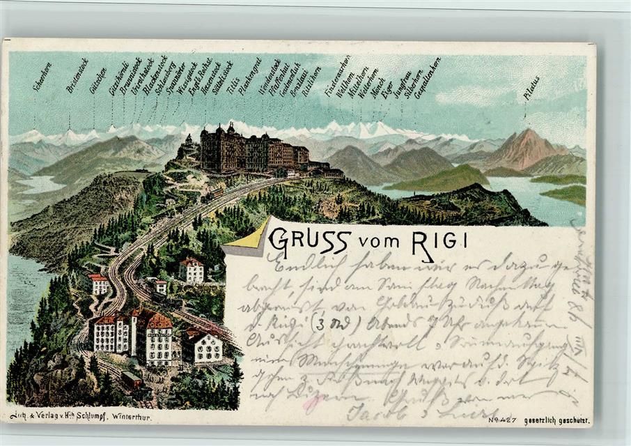 6410 Rigi Kulm Lithographie Gruss aus - Verlag Schlumpf Nr. 427, gute Erhaltung AK
