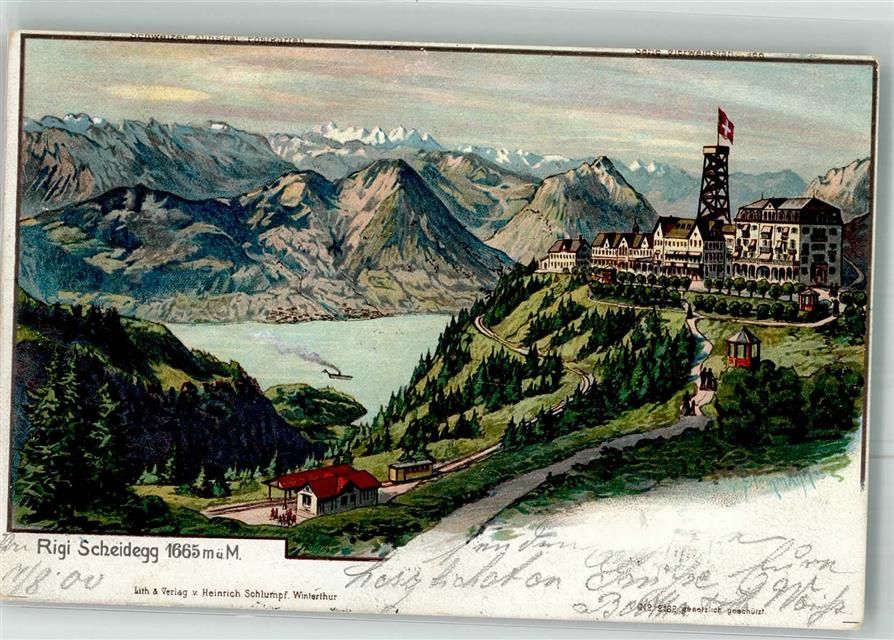 6410 Rigi Scheidegg 1900 Lithographie sign. Steinmann, C. KünstlerpostkarteNr. 2182 Aussichtsturm Hotel