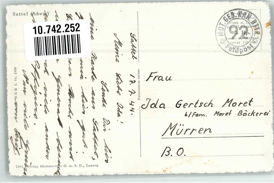 Sattel, Feldpost Mot.Geb.Kan.Bttr.92