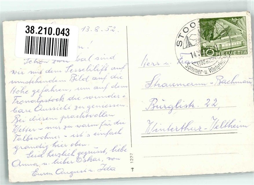 6430 Schwyz 1952 Foto AK Seilbahn Stoss-Fronalpstock