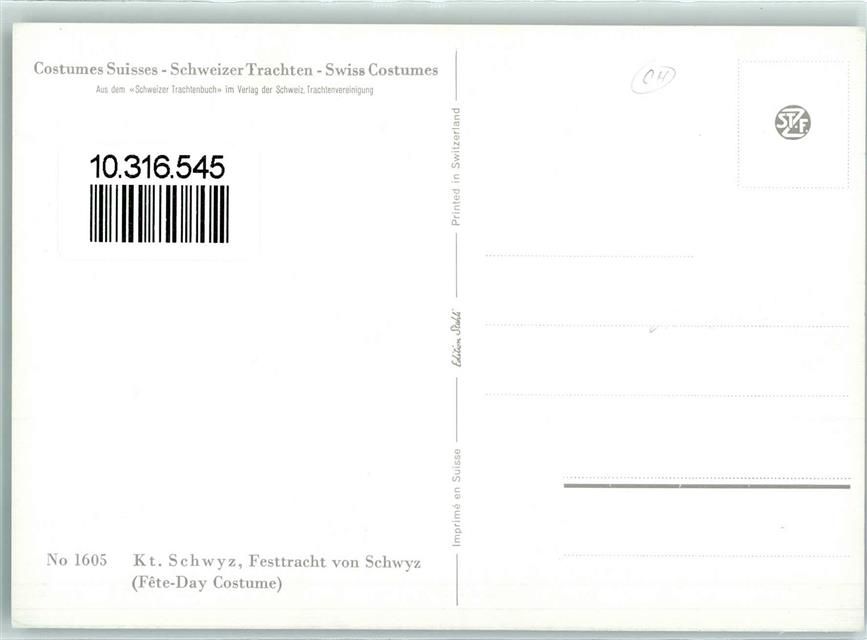 6430 Schwyz - Edition Stehli Serie Nr. 1605 - Festtracht AK