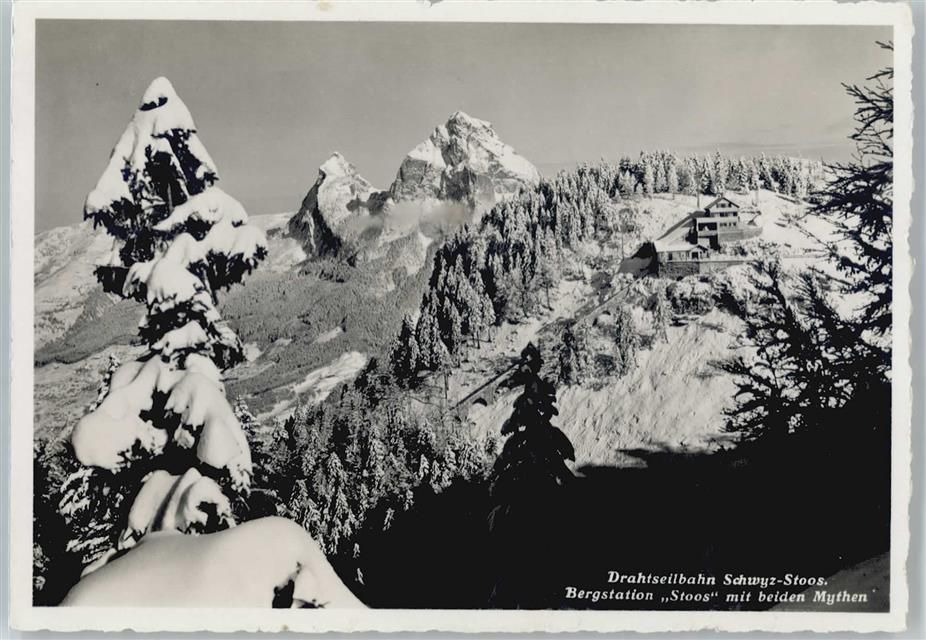 6433 Stoos SZ - Drahtseilbahn, Bergstation, Mythen