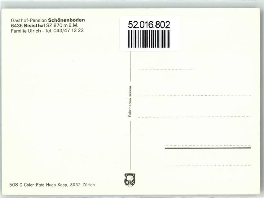 6436 Bisisthal - Gasthaus Pension Schönenboden