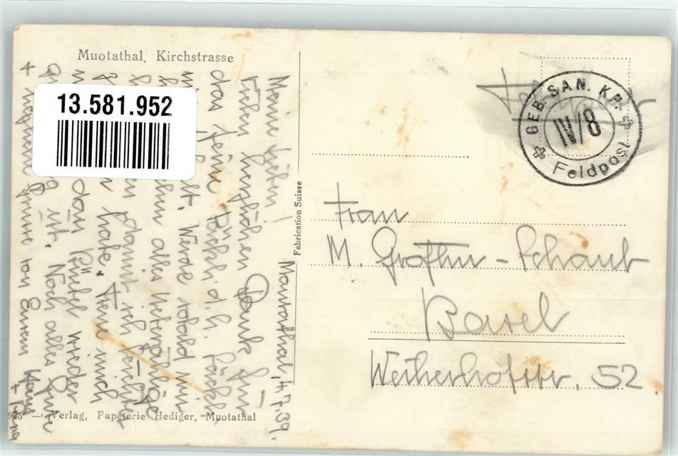 Muotathal, Feldpost Geb.San.Kp. IV/8 Kirchstrasse