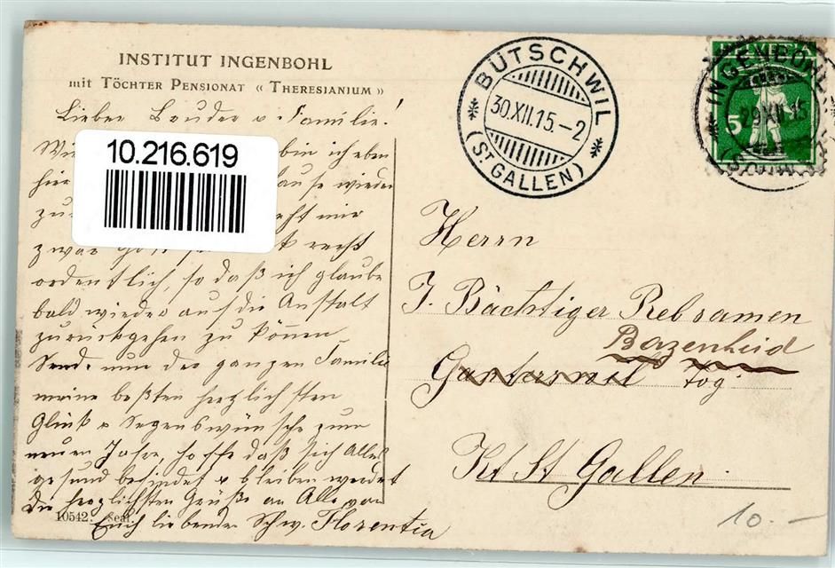 6440 Ingenbohl 1915 - Institut Ingenbohl mit Töchter Pensionat Theresianum