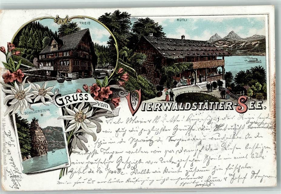6440 Vierwaldstättersee 1897 Lithographie Treib Rütli Schillerstein
