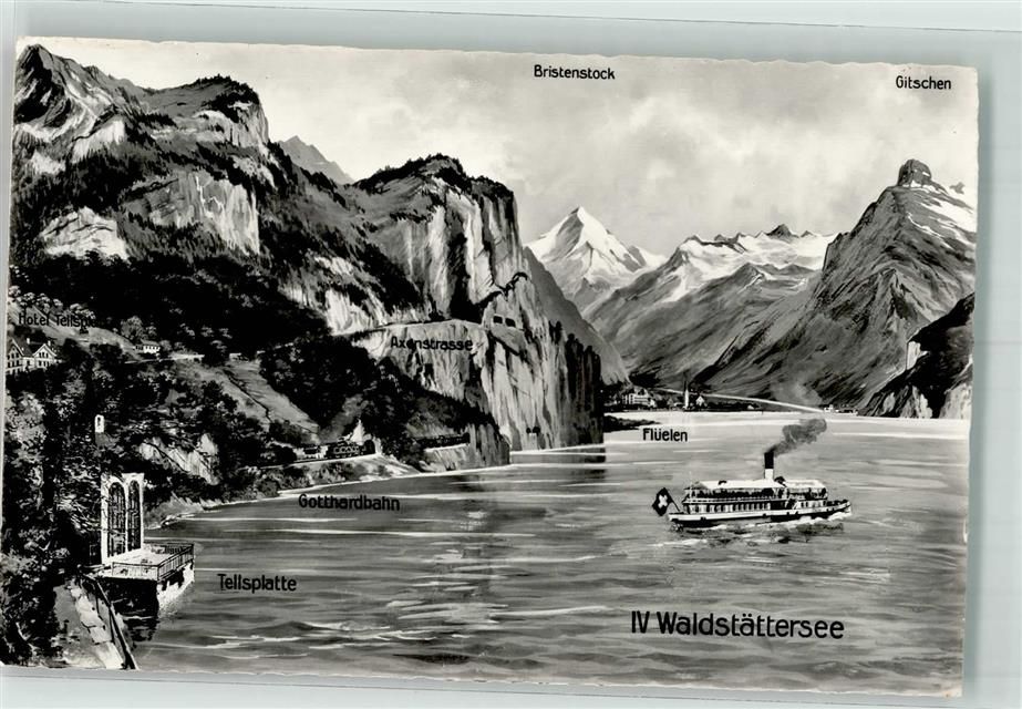 6440 Vierwaldstättersee - Raddampfer Tellsplatte Gotthardbahn Axenstrasse