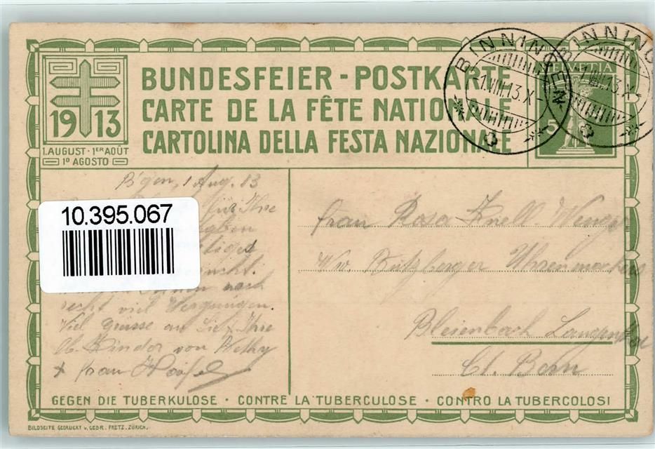 Rütli, Bundesfeier Postkarte Gegen die Tuberkulose Sign. Niefel