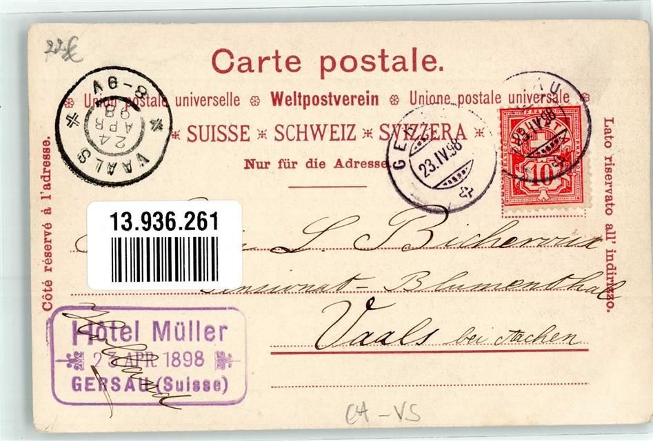 6442 Gersau 1898 - Ort lt. Stempel