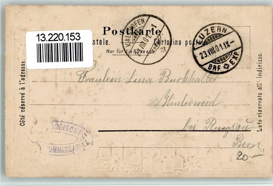 6452 Sisikon 1901 Passepartout Prägedruck Tellsplatte Helvetia Wappen Lithographie
