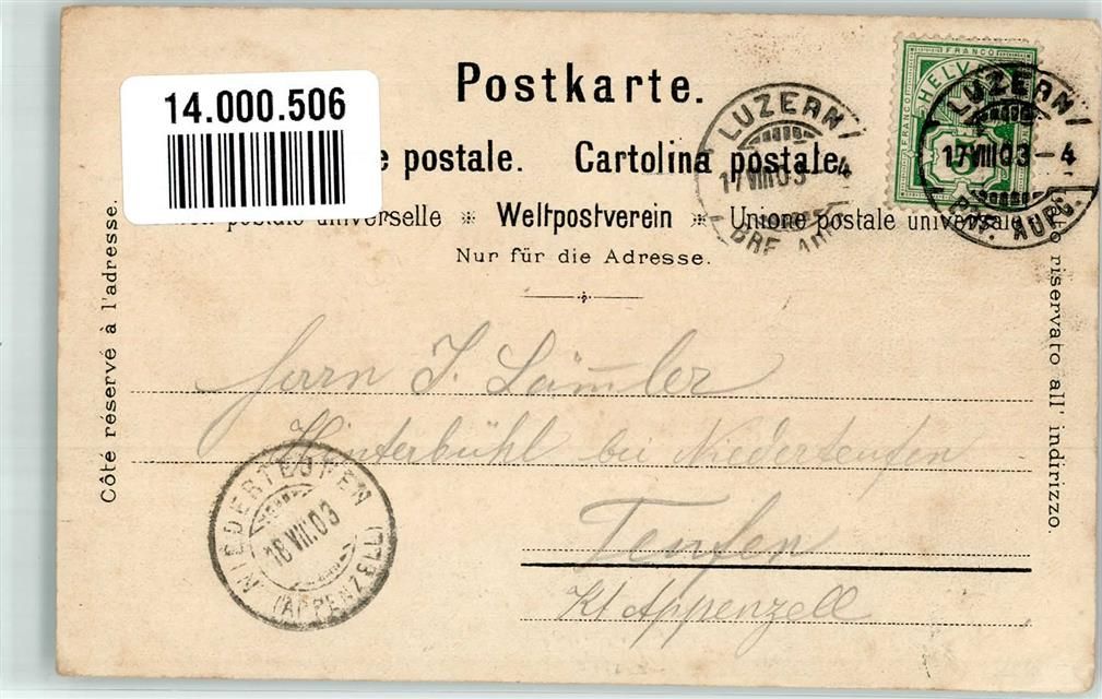 6452 Sisikon 1903 Lithographie sign. Steinmann, C. Tellskapell Mondschein