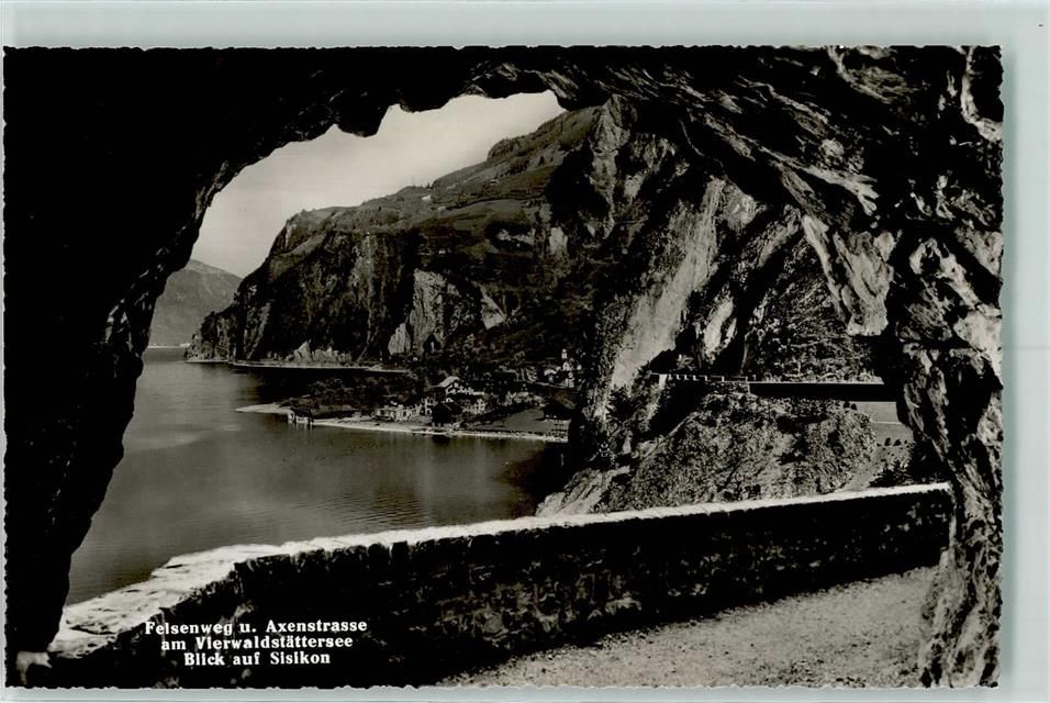 6452 Sisikon - Felsenweg und Axenstraße am Vierwaldstättersee Blick auf Sisikon