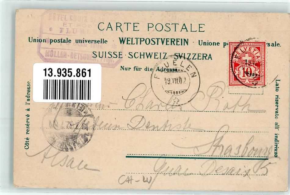 6454 Flüelen 1902 - Hotel Pension zum weissen Kreuz