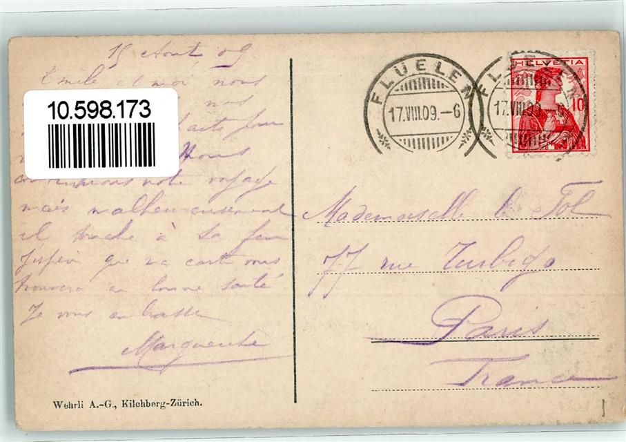 6454 Flüelen 1909 Gebrauchsspuren Bristenstock Dampfschiff