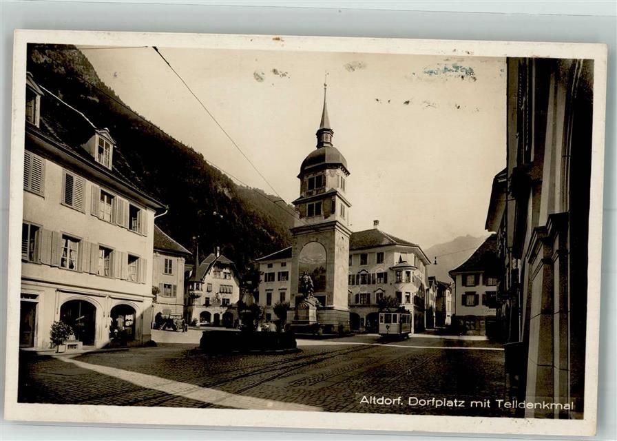 6460 Altdorf UR 1927 Foto AK Tell- Denkmal Straßenbahn Dorfplatz