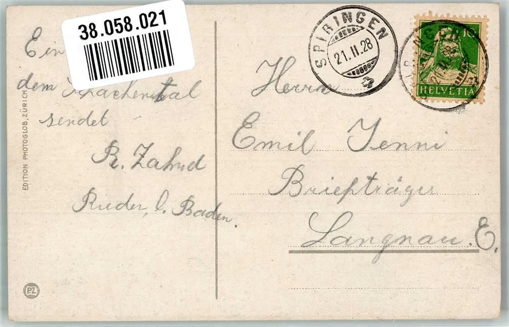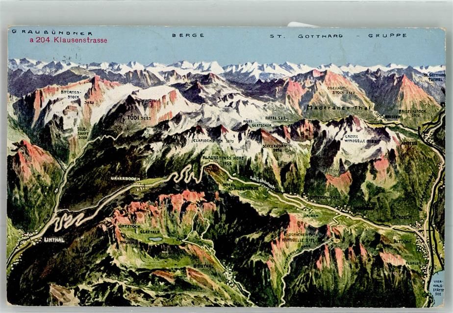 Spiringen, Vogelschau Klausenstrasse Ort lt. Stempel