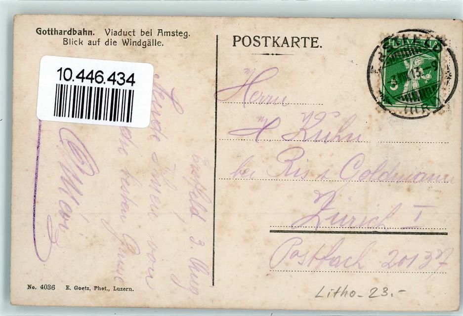 6474 Amsteg 1913 Lithographie Gotthardbahn Viadukt