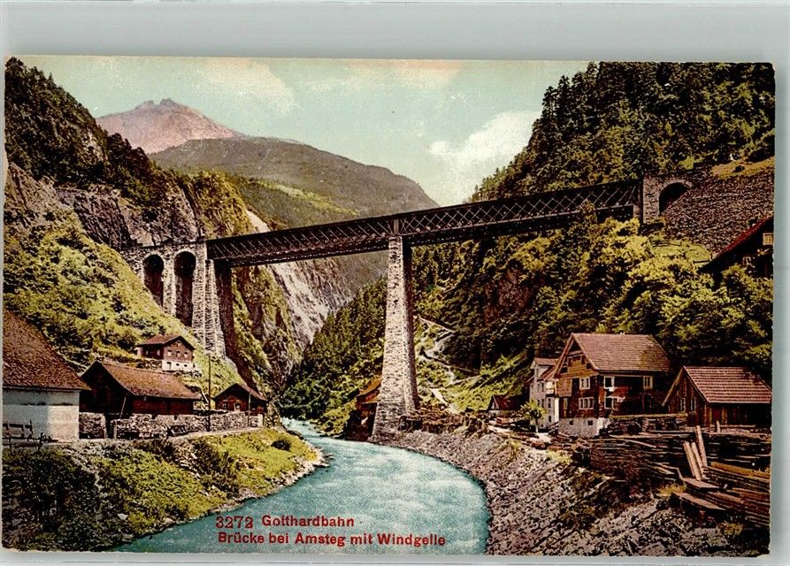 6474 Amsteg Foto AK Brücke Grotthardbahn