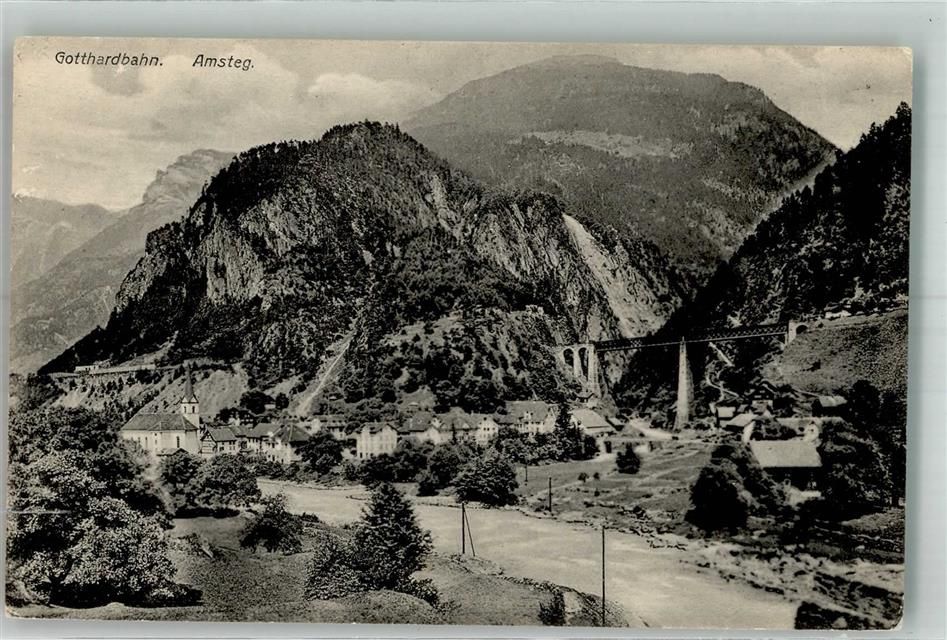 6474 Amsteg Foto AK Gotthardbahn Viadukt