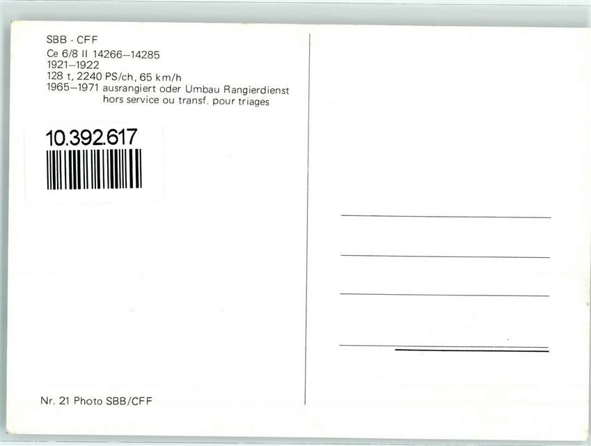 Göschenen, Krokodil SBB - CFF Ce 5/8 II 14266 - 14285 128 t 2240 PS/ch 65 km/h Ort lt. Stempel