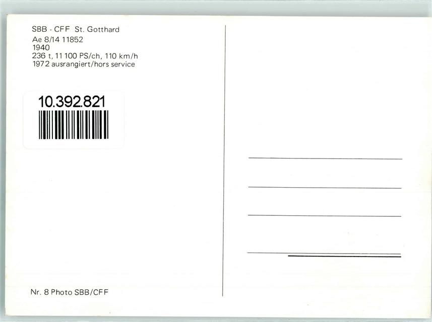 Göschenen, SBB/CFF St. Gotthard Ae 8/14 11852 236 t 11100 PS/ch 110 km/h Ort lt. Stempel