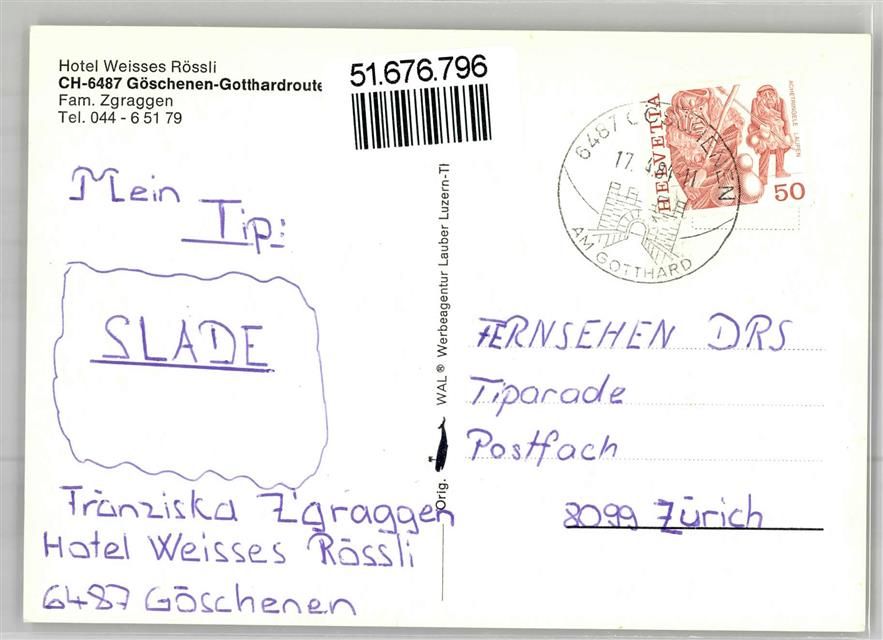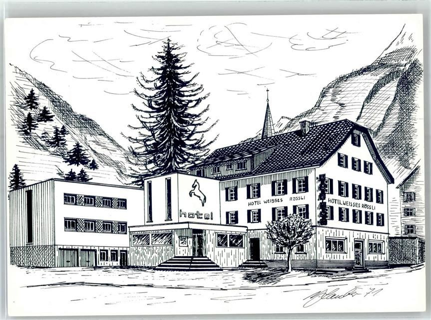 6487 Göschenen 1984 Künstlerkarte Hotel Weisses Rössli