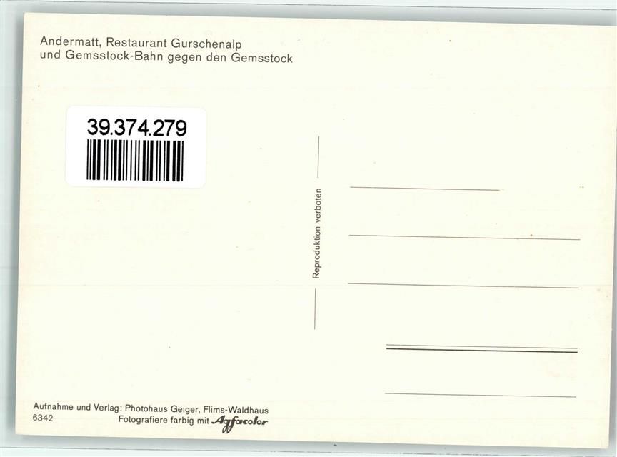 6490 Andermatt - Gemsstock Bahn Restaurant Gurschenalp