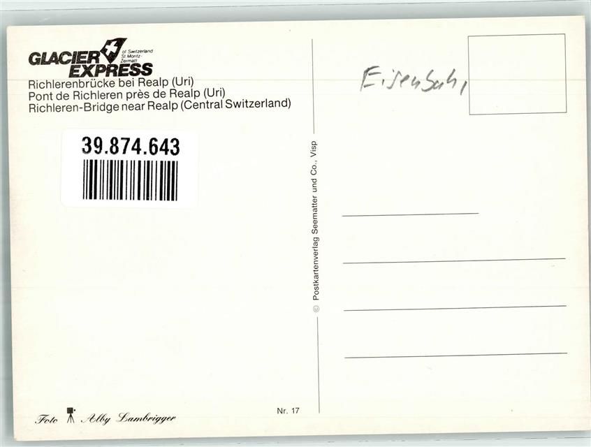 6491 Realp - Glacier Express Richlerenbrücke Verlag Seematter Nr. 17 Foto: Alby Lambrigger