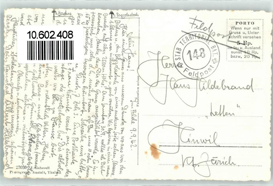 Realp, Hotel Furkablick Feldpost Stab Territorial Bat 148