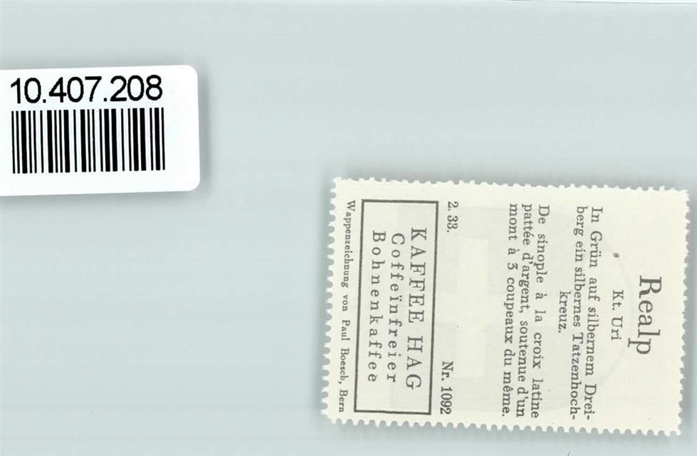 Realp, Vignette Wappen Kaffee Hag 1920-1940 Kreuz