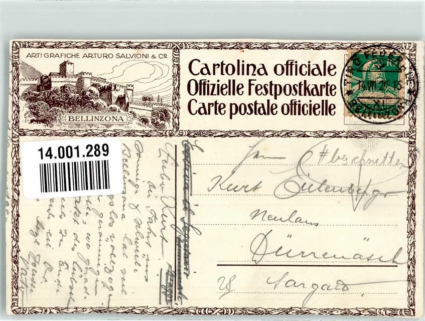 6500 Bellinzona Gebrauchsspuren Schützenfest 1929 Sonderstempel beschnitten