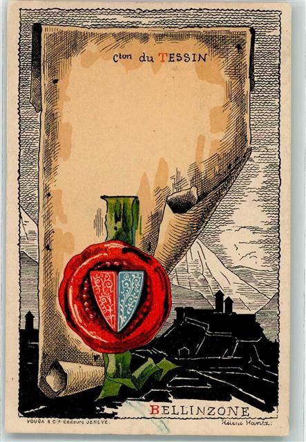 6500 Bellinzona Künstlerkarte Schriftrolle Siegel Wappen Kanton du Tessin sign. Helene Hantz
