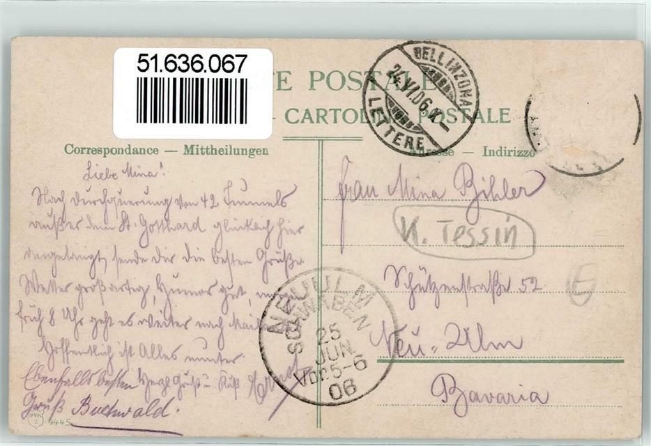 6500 Bellinzona Lithographie / Künstlerkarte 1906