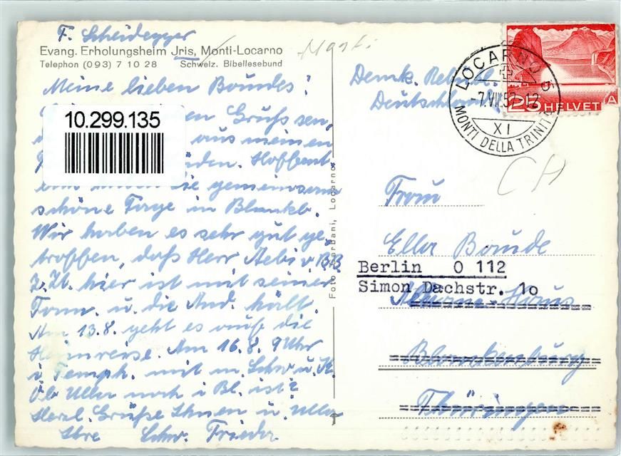 6600 Locarno 1957 - Ev. Erholungsheim Iris AK