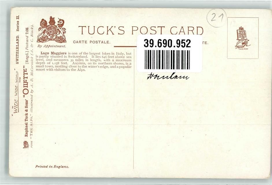 Ascona, sign. McCormick Verlag Tuck Oilette Serie II Wide Wide World Schweiz Lago Maggiore