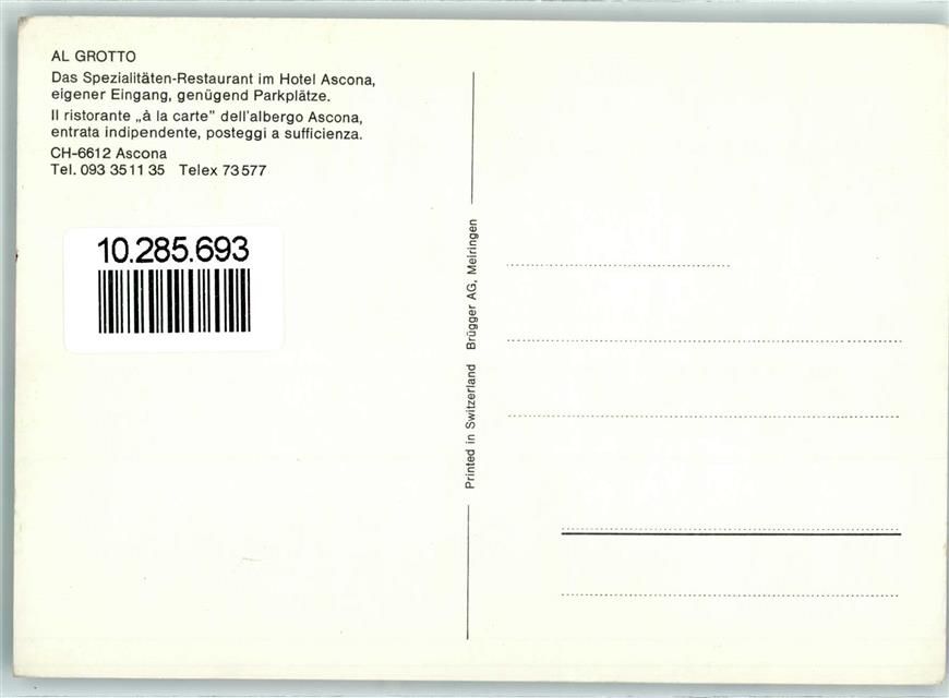 6612 Ascona Moscia - Hotel Ascona Restaurant Al Grotto